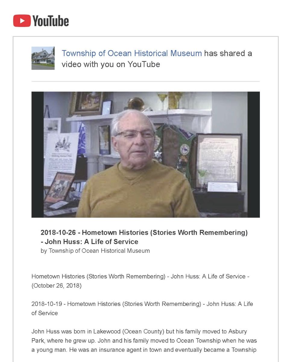 PLEASE NOTE: All official e-mails from the Township of Ocean Historical Museum come from either: